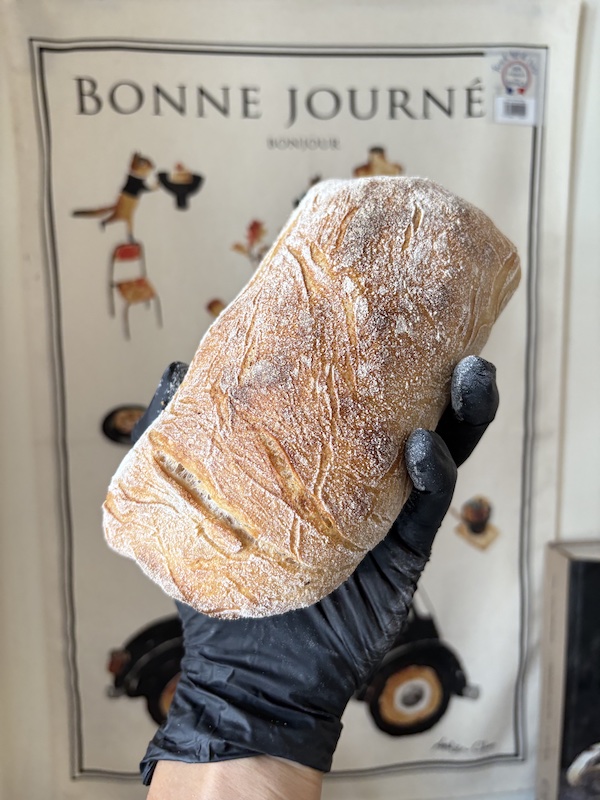 非常非常適合當做三明治的麵包體,帶有咀嚼感而且外皮不會太硬,如果馬上要現吃,回烤一下,橫向切開不切斷,夾入自己喜歡的料,甜鹹都很適合,無糖無蛋無奶,100%酸種製作,没有負擔。